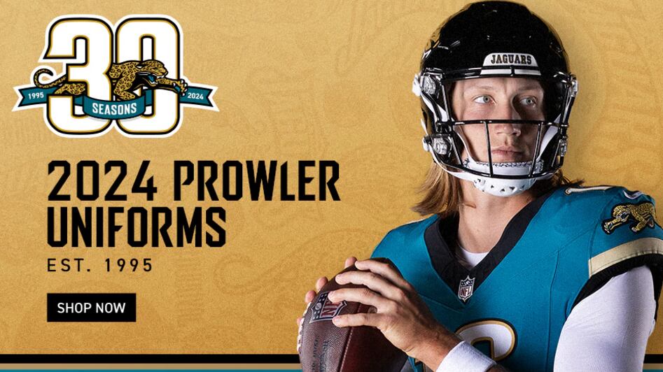JAGUARS’ PROWLER THROWBACKS ARE HERE! As we prepare for a monumental 30th season, the Jags are paying tribute to their roots and are excited to officially launch the Prowler Throwbacks. The throwback uniforms got their name from the running Jaguar embroidered on the sleeves of the jerseys. The pants feature a teal stripe with gold and black piping going along the length of the pants. The helmets will have the original Jaguars logo on the side used by the team in the inaugural season of 1995 until 2013. See these uniforms in action on October 6, 2024 when the Jaguars take on the Colts at EverBank Stadium. At halftime, the Jaguars’ first head coach, Tom Coughlin, will be inducted into the Pride of the Jaguars. Coughlin was the Jaguars head coach from 1995 to 2002.