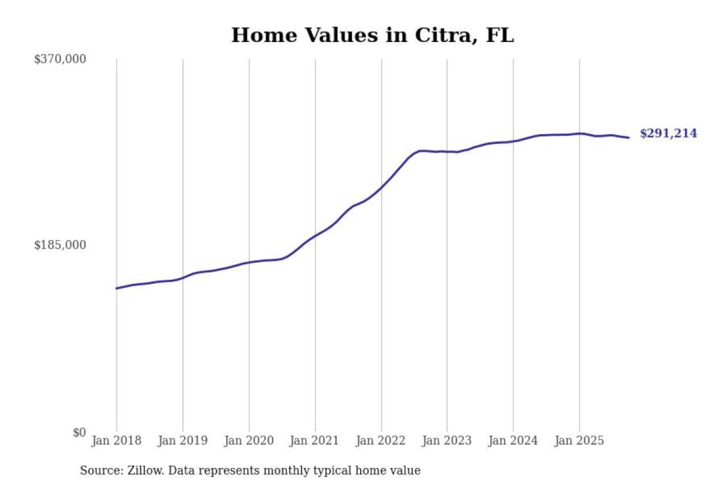 Stacker compiled a list of cities with the most expensive homes in the Ocala, FL metro area using data from Zillow. Charts show the monthly typical home value since January 2018.
