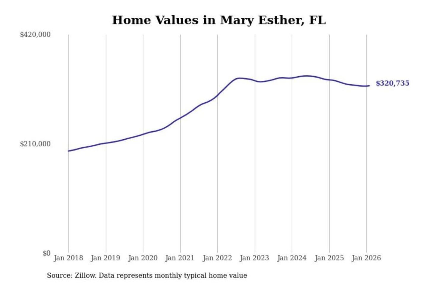 Stacker compiled a list of cities with the most expensive homes in the Crestview-Fort Walton Beach-Destin, FL metro area using data from Zillow. Charts show the monthly typical home value since January 2018.