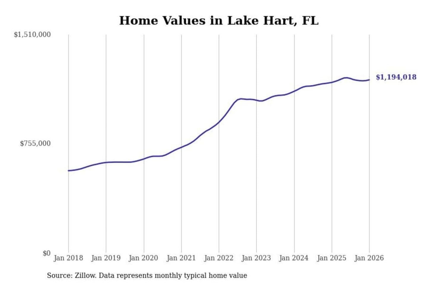 Stacker compiled a list of cities with the most expensive homes in the Orlando-Kissimmee-Sanford, FL metro area using data from Zillow. Charts show the monthly typical home value since January 2018.