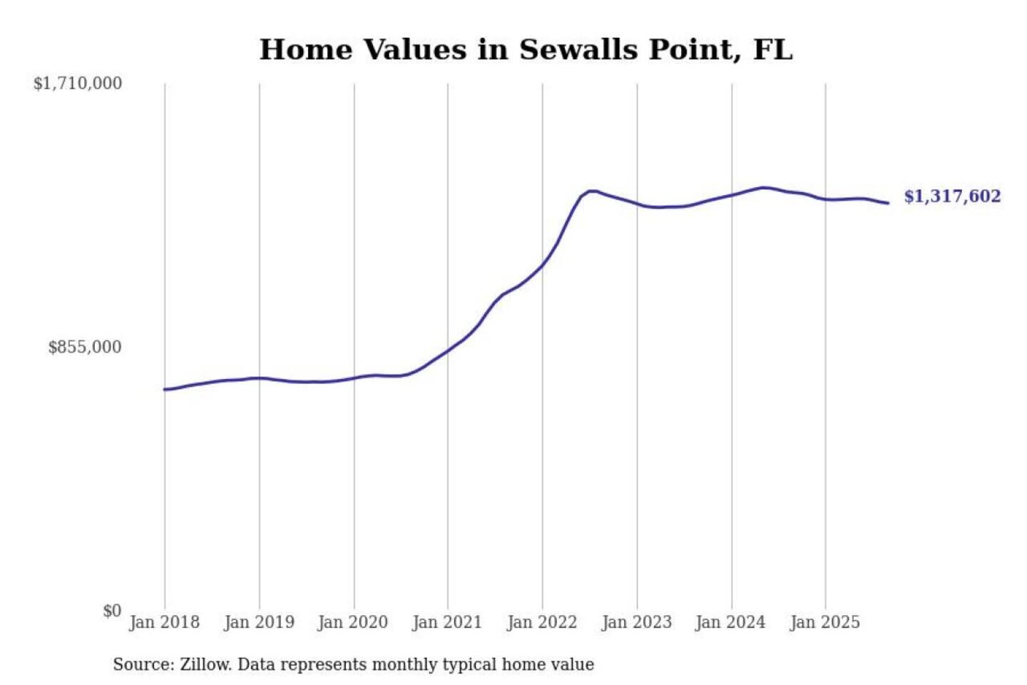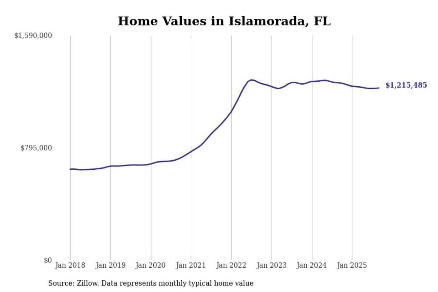 Stacker compiled a list of cities with the most expensive homes in Florida using data from Zillow. Cities are ranked by the Zillow Home Values Index for all homes as of September 2025. The charts in this story were created automatically using Matplotlib.
