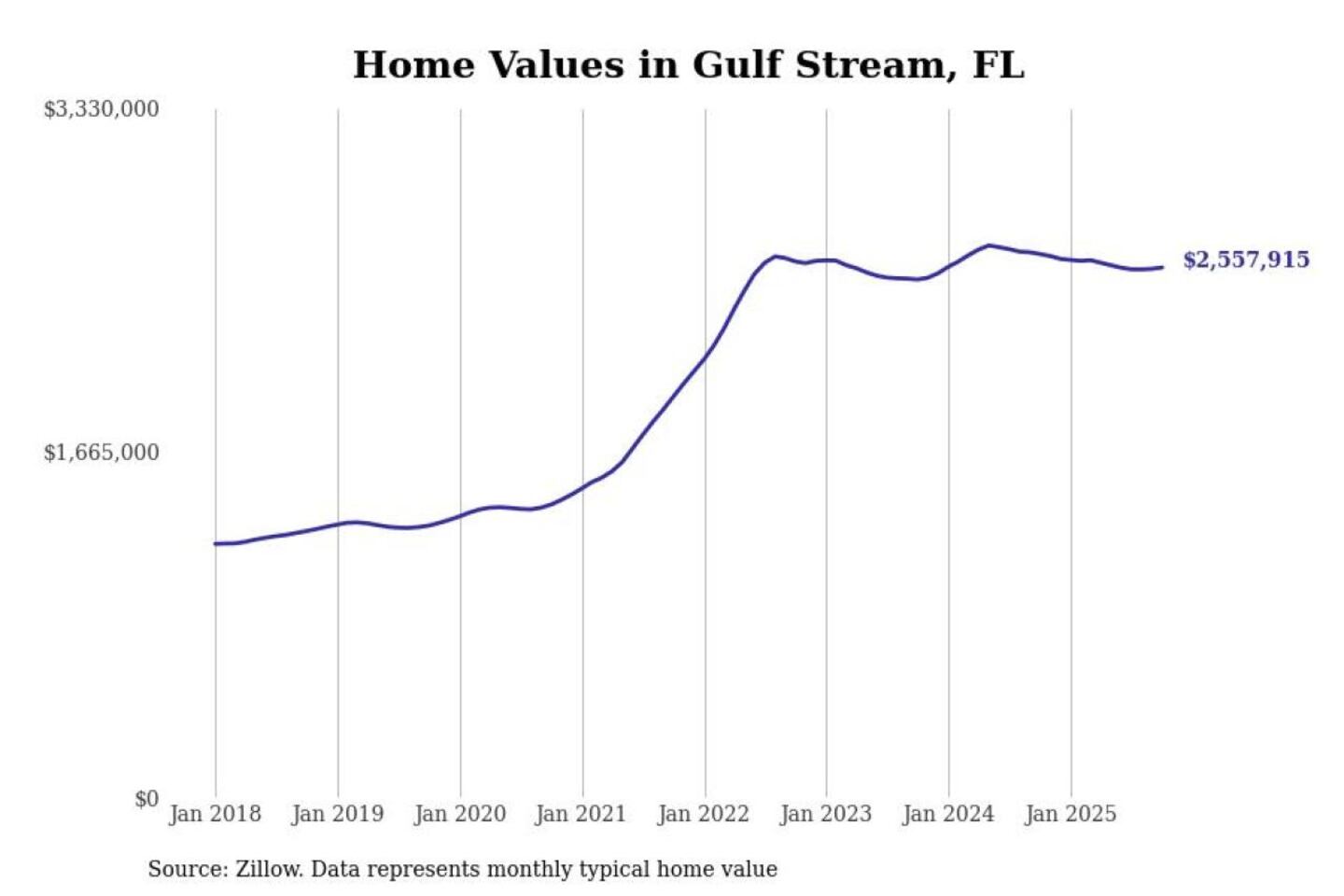 - Typical home value: $2,557,915