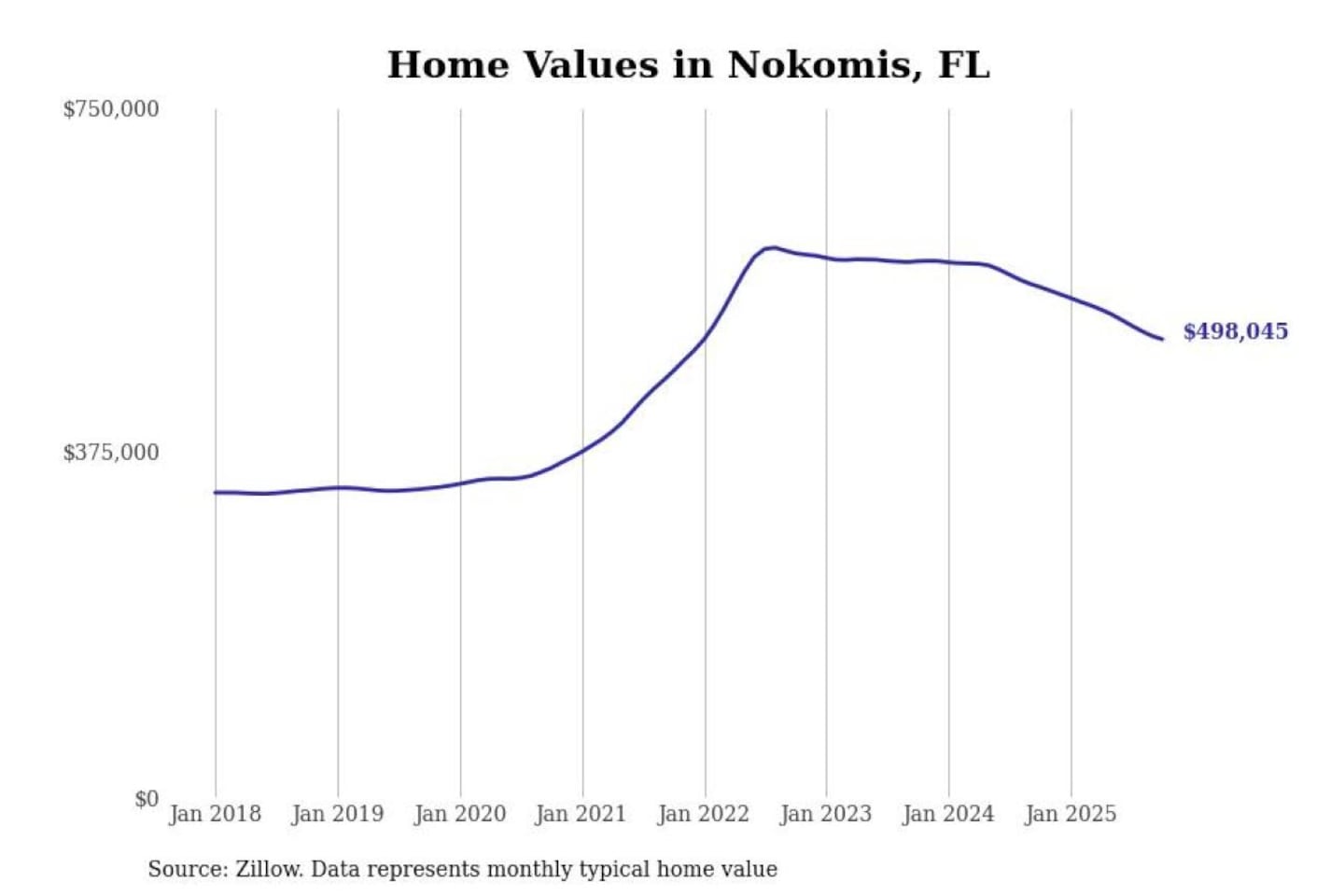 Stacker compiled a list of cities with the most expensive homes in the North Port metro area using data from Zillow. Charts show the monthly typical home value since January 2018. All 19 cities and towns with data available were included in the list.