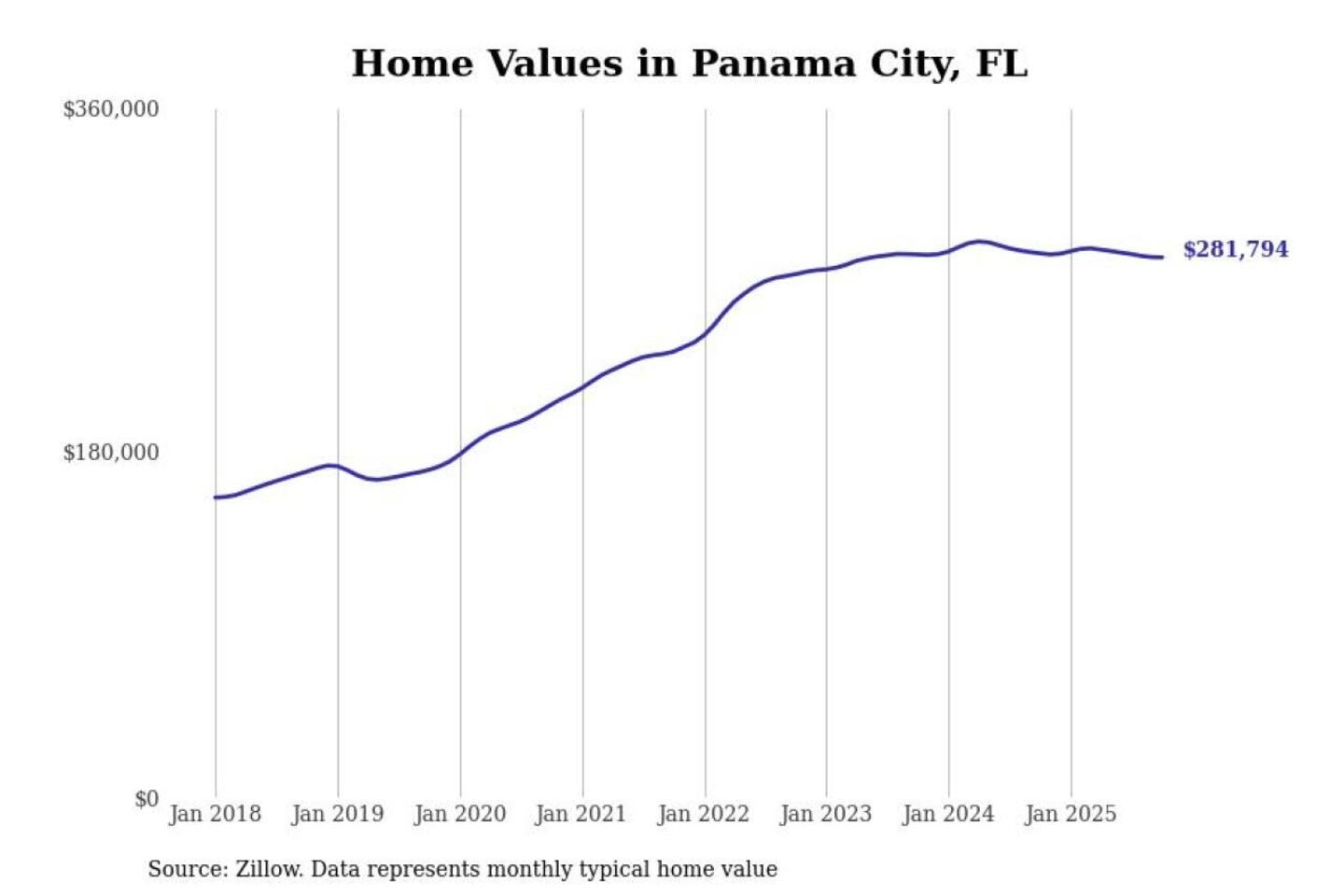 Stacker compiled a list of cities with the most expensive homes in the Panama City metro area using data from Zillow. Charts show the monthly typical home value since January 2018. All 10 cities and towns with data available were included in the list.