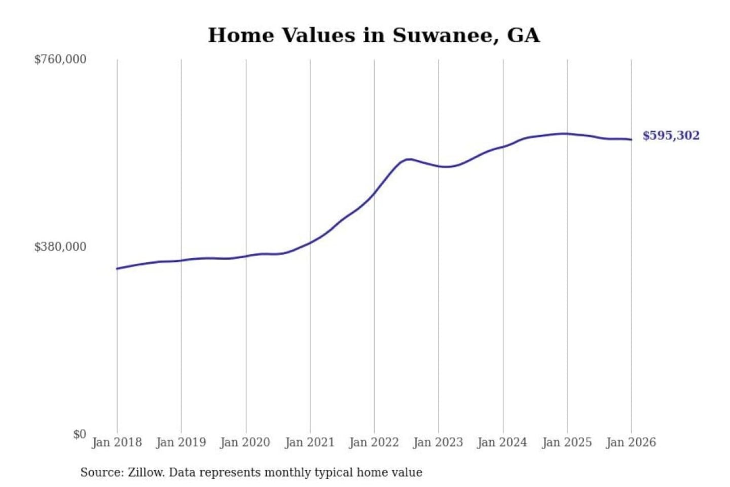 - Typical home value: $595,302