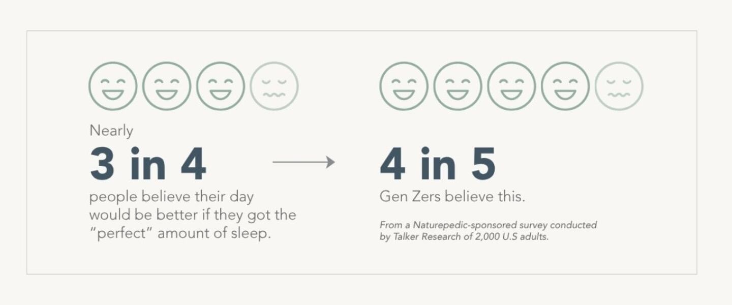 Sleep well, wake well, live better. It’s a cycle worth getting right. Most adults (75%) believe their day would be better if they got the perfect amount of sleep. This is especially true for Gen Zers, with 80% of respondents born between the years 1997 and 2012 believing that getting the perfect amount of sleep leads to a better day.
