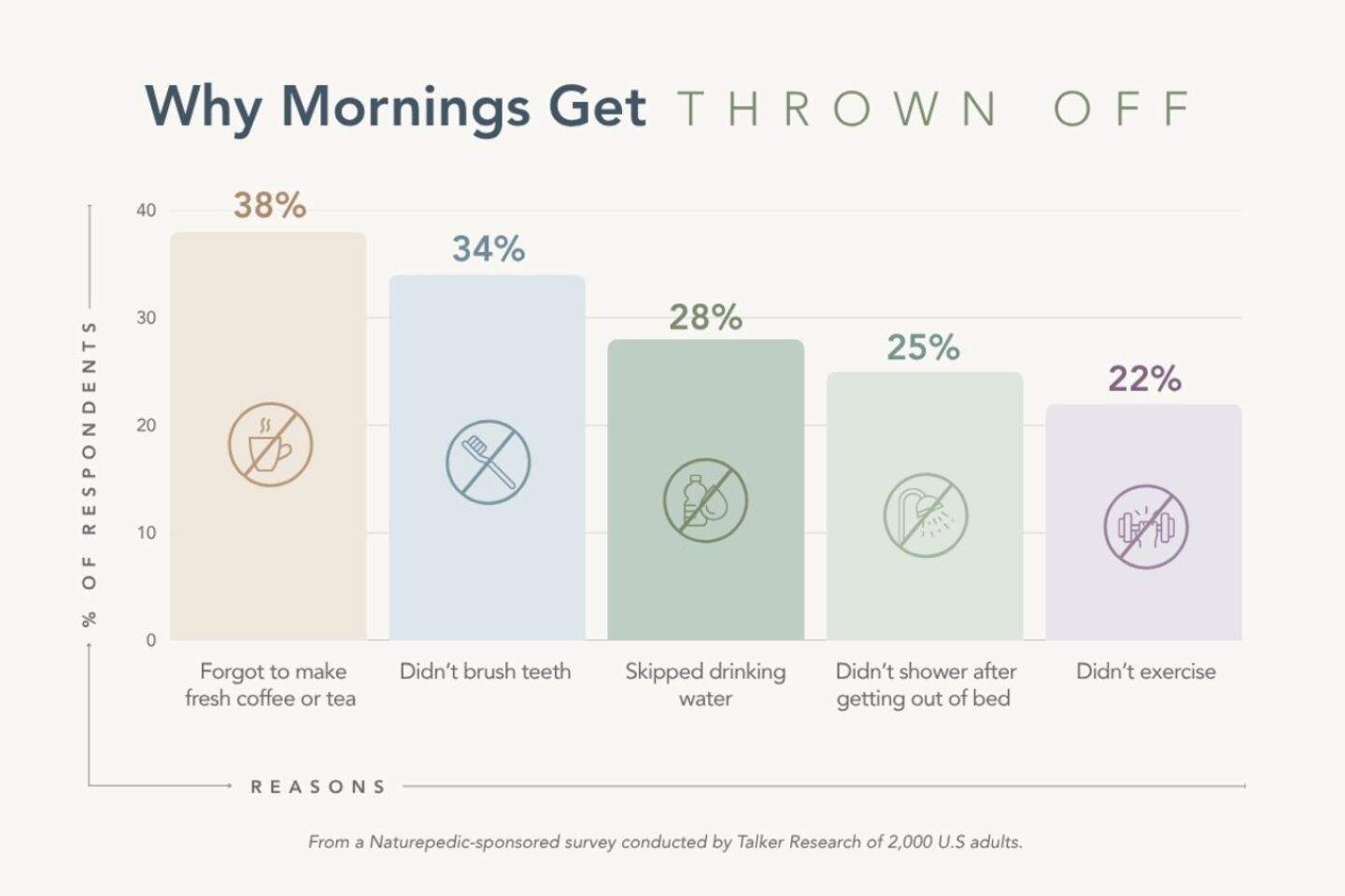 How much does your morning routine impact the rest of your day? Naturepedic teamed up with leading consumer insights and data firm Talker Research to find out — and the results might make you rethink hitting snooze. In fact, 37% of Americans say they can tell how their day will go within the first 10 minutes of waking up.
