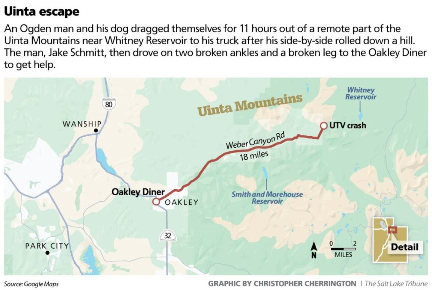 The Salt Lake Tribune shares the story of how Schmitt and Buddy made it through the night after a crash in the Utah wilderness.