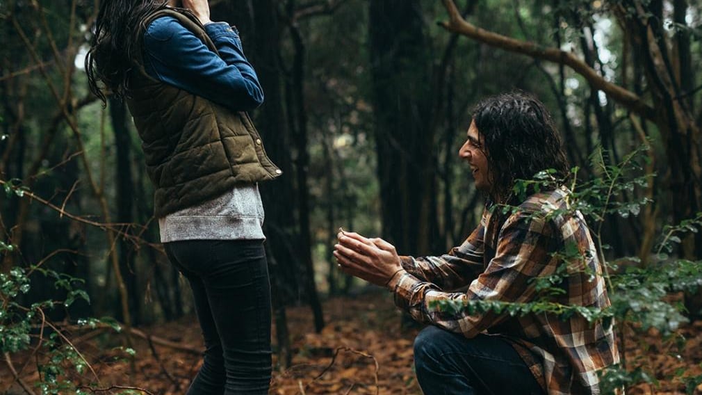In this romantic comedy, Andrew Hennings proposes to Melanie Smooter with an entire room inside a famous Manhattan jewelry store available for her to select her dream engagement ring. The gesture is grand, but what makes it special is the idea of personalization and choice. This particular proposal is ideal for the fashion and luxury-loving couple who enjoy spending their day—and their future together—shopping for the finer things in life.
