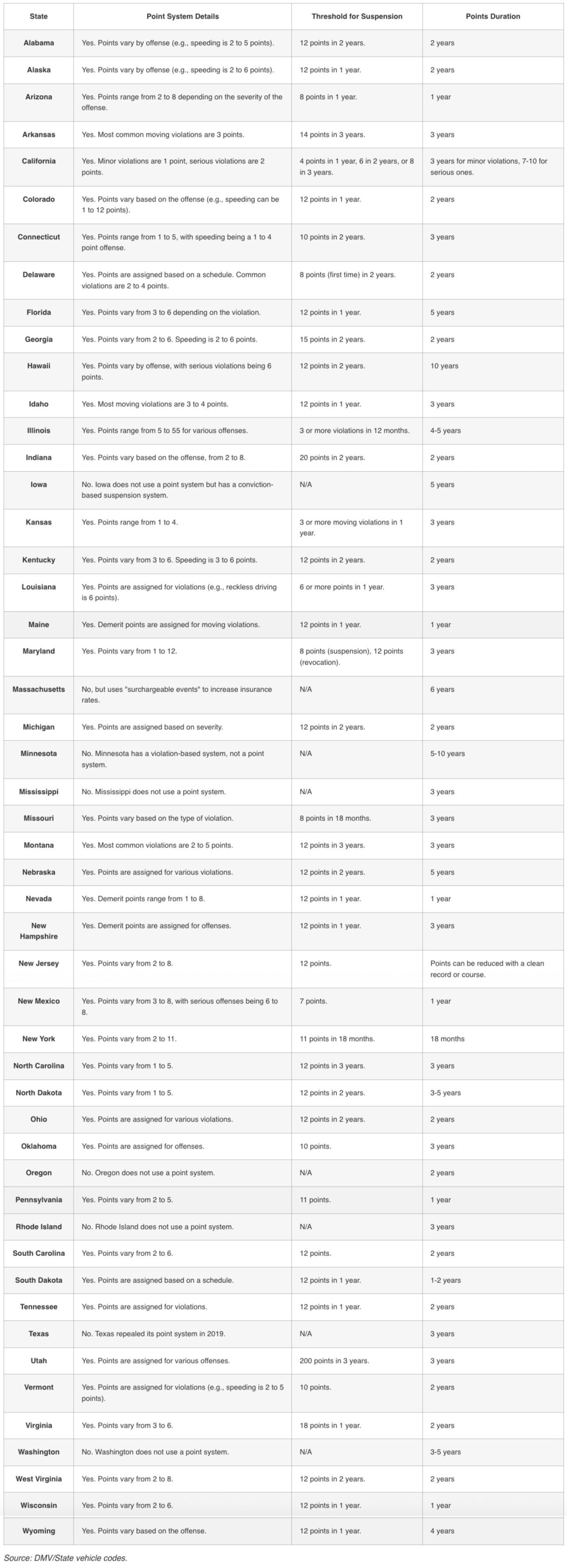 It’s important to note that while most states use this system, not all do. The following states do not have a formal driver’s license point system: