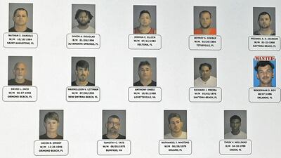32-year-old Nathan Daniels, of St. Augustine, is among the suspects who were arrested. Many of the other men are from central Florida, while two are from Virginia. Benjerman Roy, out of Orlando, is the only suspect still outstanding, but there is an active warrant out for his arrest.