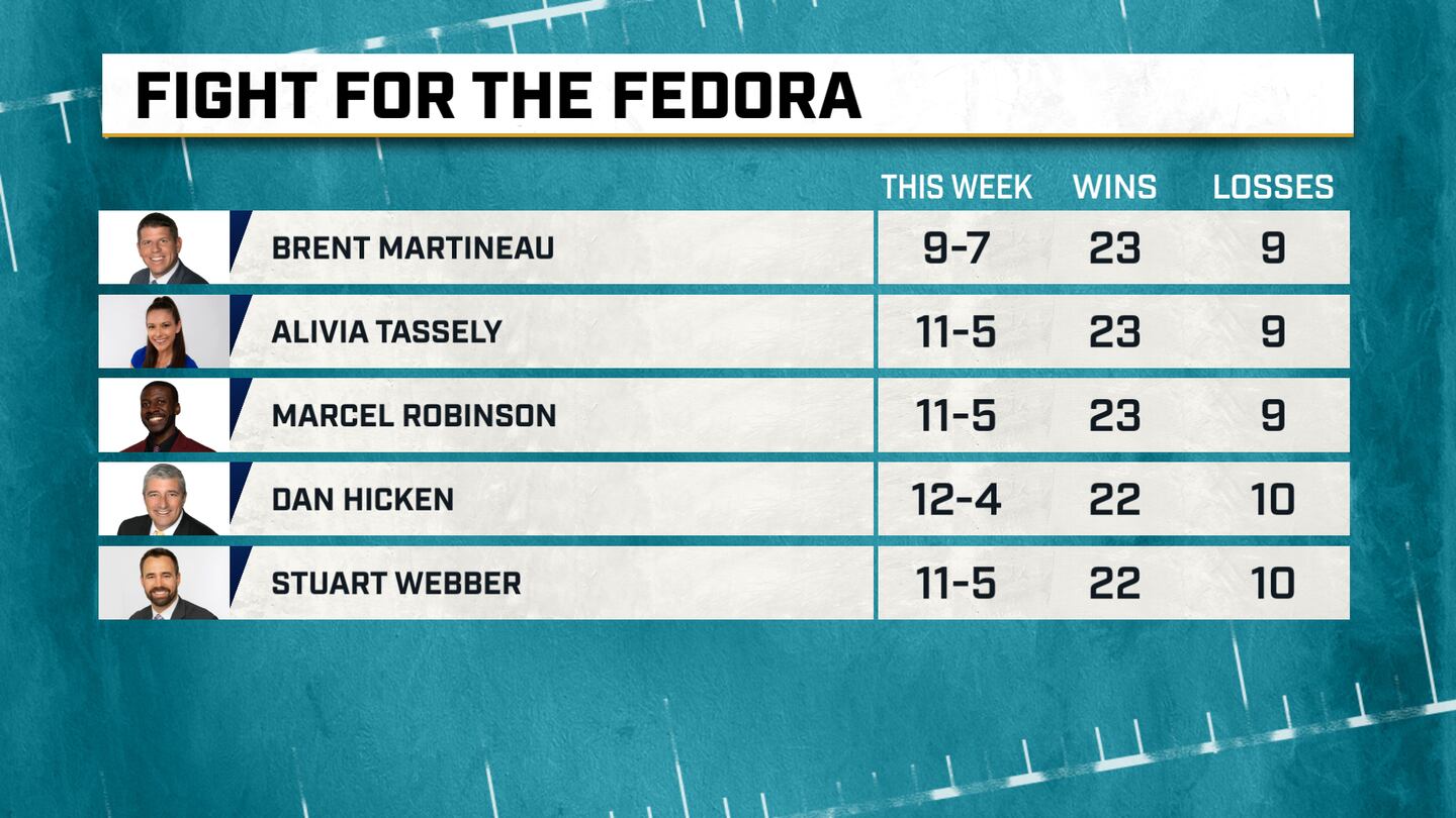 When Garrard joined the Action Sports Jax team as an analyst after his playing career, the team started a weekly picks segment during some of their Jags shows. A dozen years later, the Fight For The Fedora is still a heated competition among members of the sports department.
