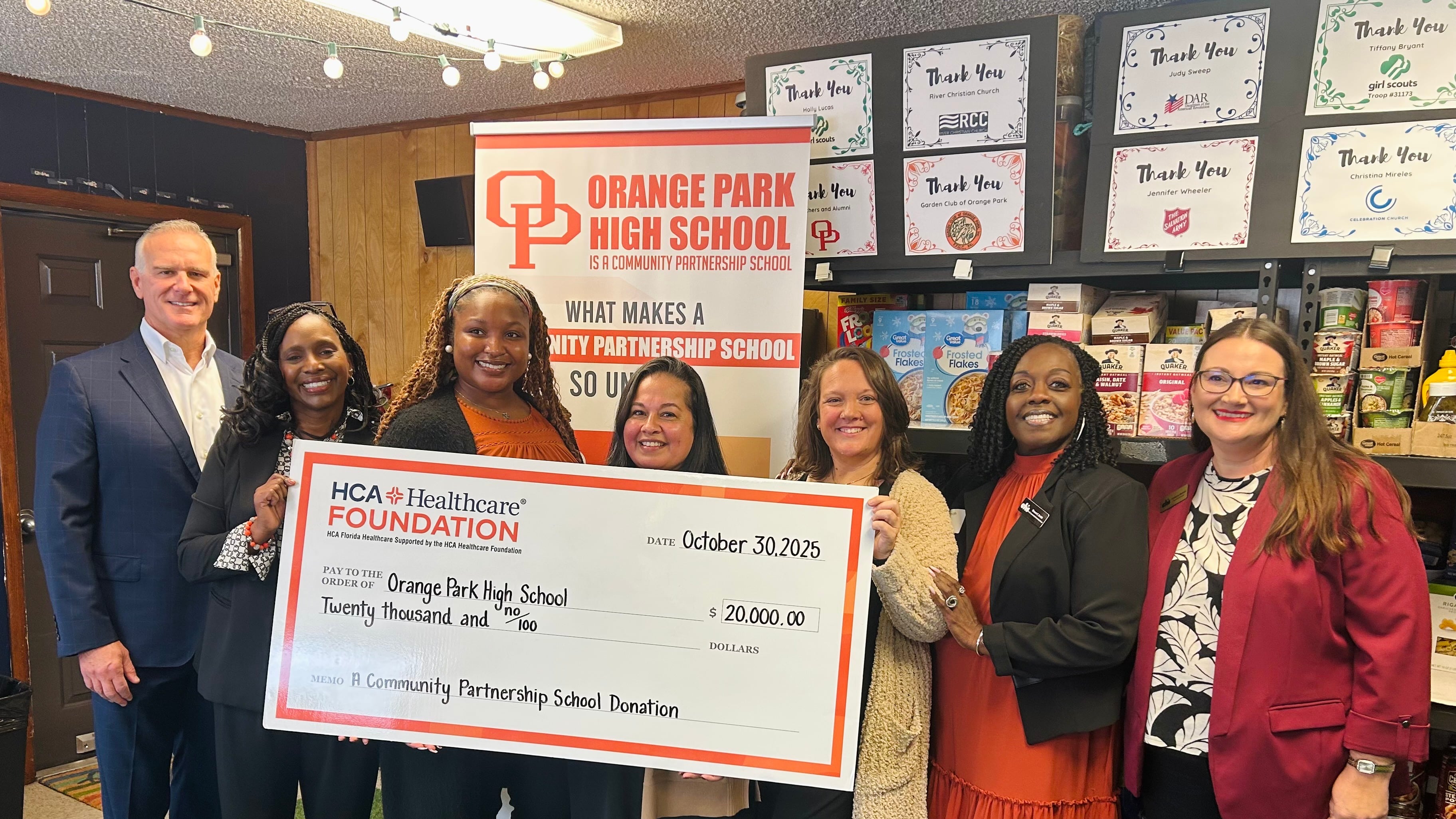 ORANGE PARK, Fla. — HCA Florida Orange Park Hospital announced a $20,000 donation to Orange Park High School to support the Community Partnership School initiative aimed at addressing food insecurity.