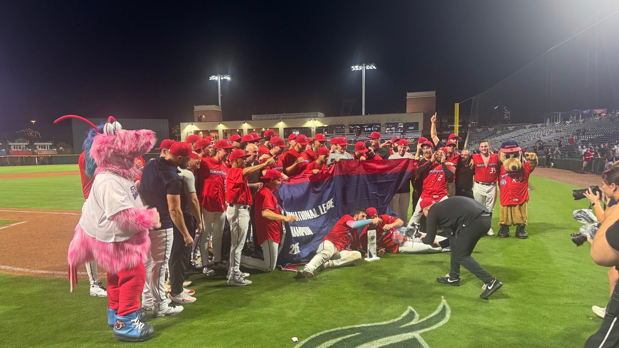 SHELL YES!: Jacksonville celebrates its first Triple-A championship since 1968. The Jumbo Shrimp beat the RailRiders 7-4 on Thursday night at VyStar Ballpark. The team moves on to a one-game AAA national championship game on Saturday in Las Vegas. The International League has been naming a champ since 1884. The Jacksonville Mets last won the IL playoffs in 1968.