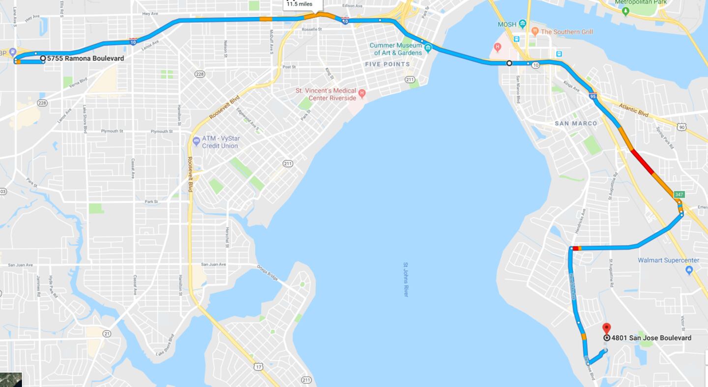 - I-10 eastbound at I-295 – Closed 12:45 p.m. – 1:45 p.m.