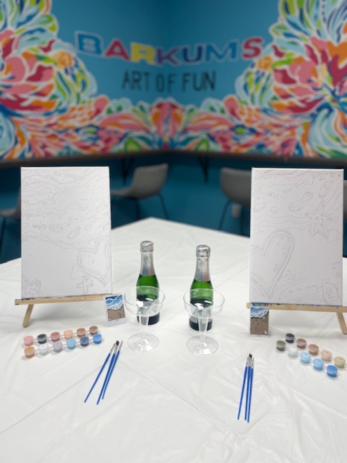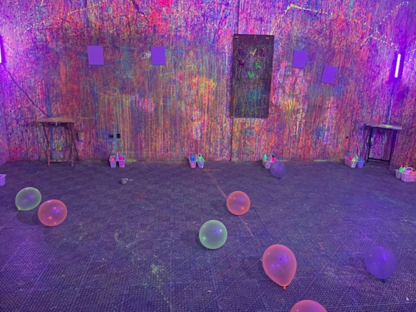 Barkum’s features three different creative spaces. Two studios are dedicated to splatter painting, offering both neon and glow-in-the-dark options while the third allows guests to enjoy a more traditional DIY painting experience.