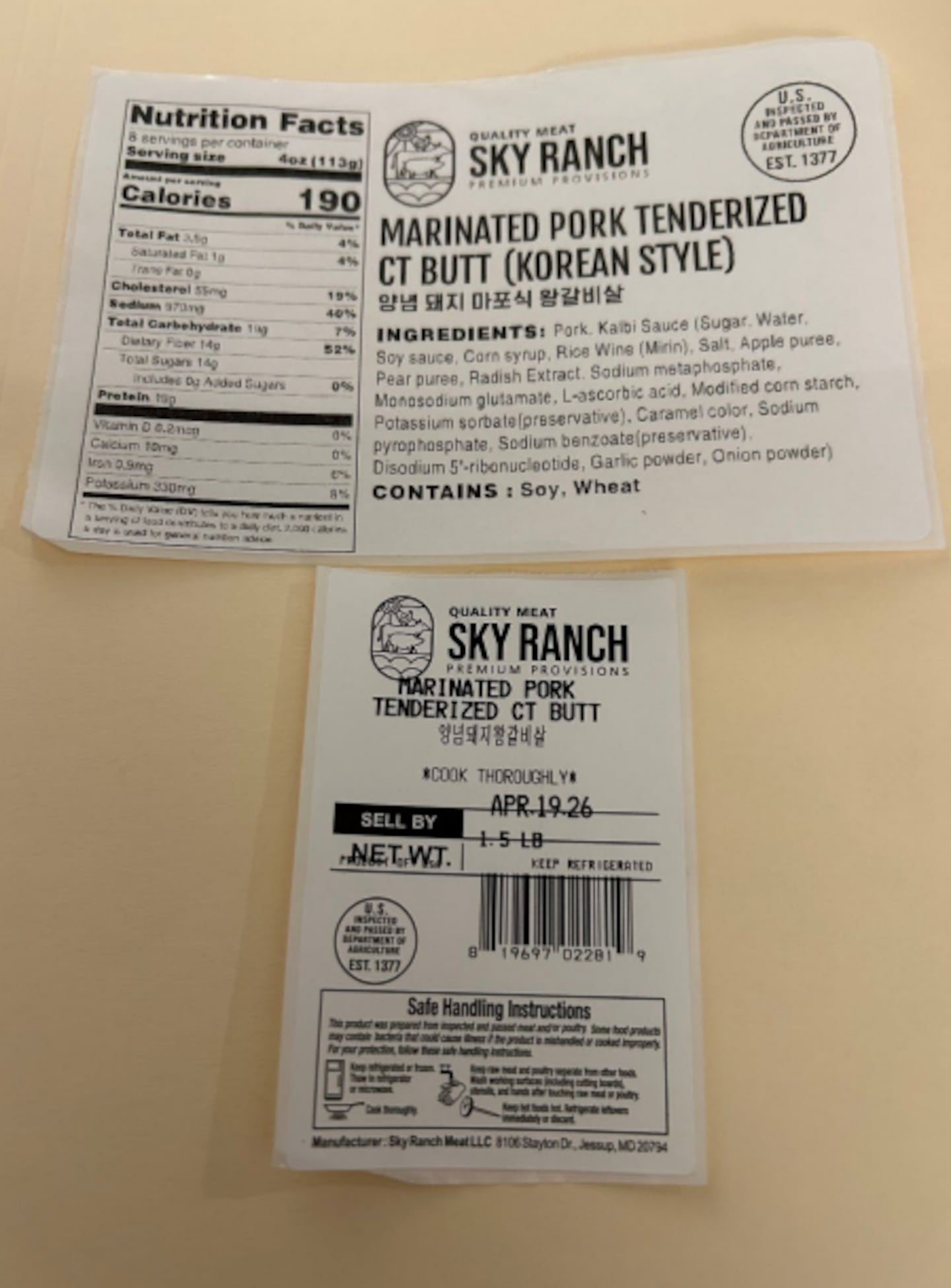 - Quality Meat Sky Ranch Premium Provisions Marinated Beef Sliced Short Ribs/LA Style with sell by dates “DEC.11.25″ through “APR.16.26″