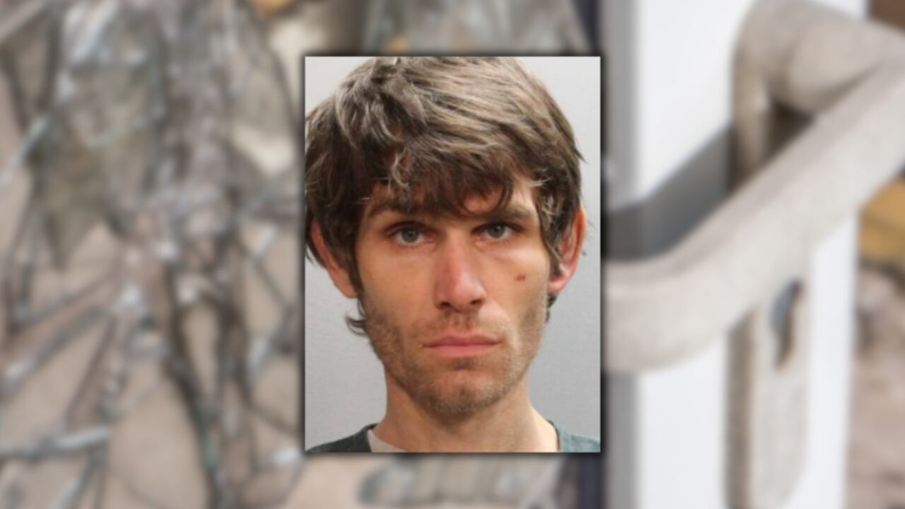 He was arrested on February 6th, according to JSO jail logs, after being observed breaking the front door of that location the same way.