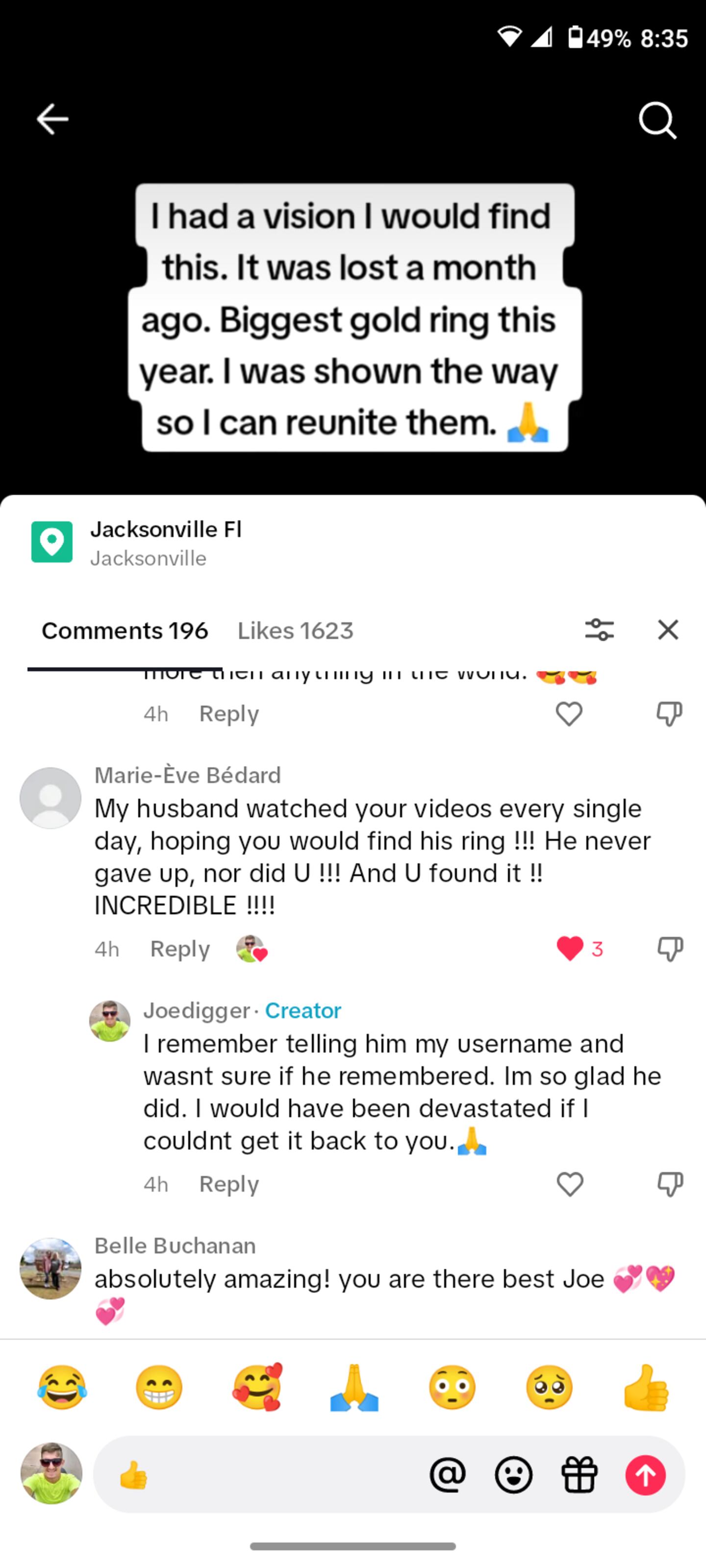 In a post, the woman commented on a post saying, “My husband watched your videos every single day, hoping you would find his ring !!!”