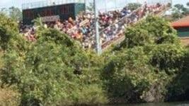 The student says they have been in the bleachers for well over an hour. In the message sent to parents, the school district said they are providing lunch and bottled water. @ActionNewsJax pic.twitter.com/laHEq0TrUP