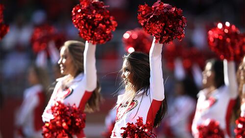 Photos: 49ers cheerleaders SANTA CLARA, CALIFORNIA - NOVEMBER 17: The San Francisco 49ers cheerleaders perform during the first half of the NFL game against the Arizona Cardinals at Levi's Stadium on November 17, 2019 in Santa Clara, California. (Photo by Lachlan Cunningham/Getty Images) (Lachlan Cunningham)