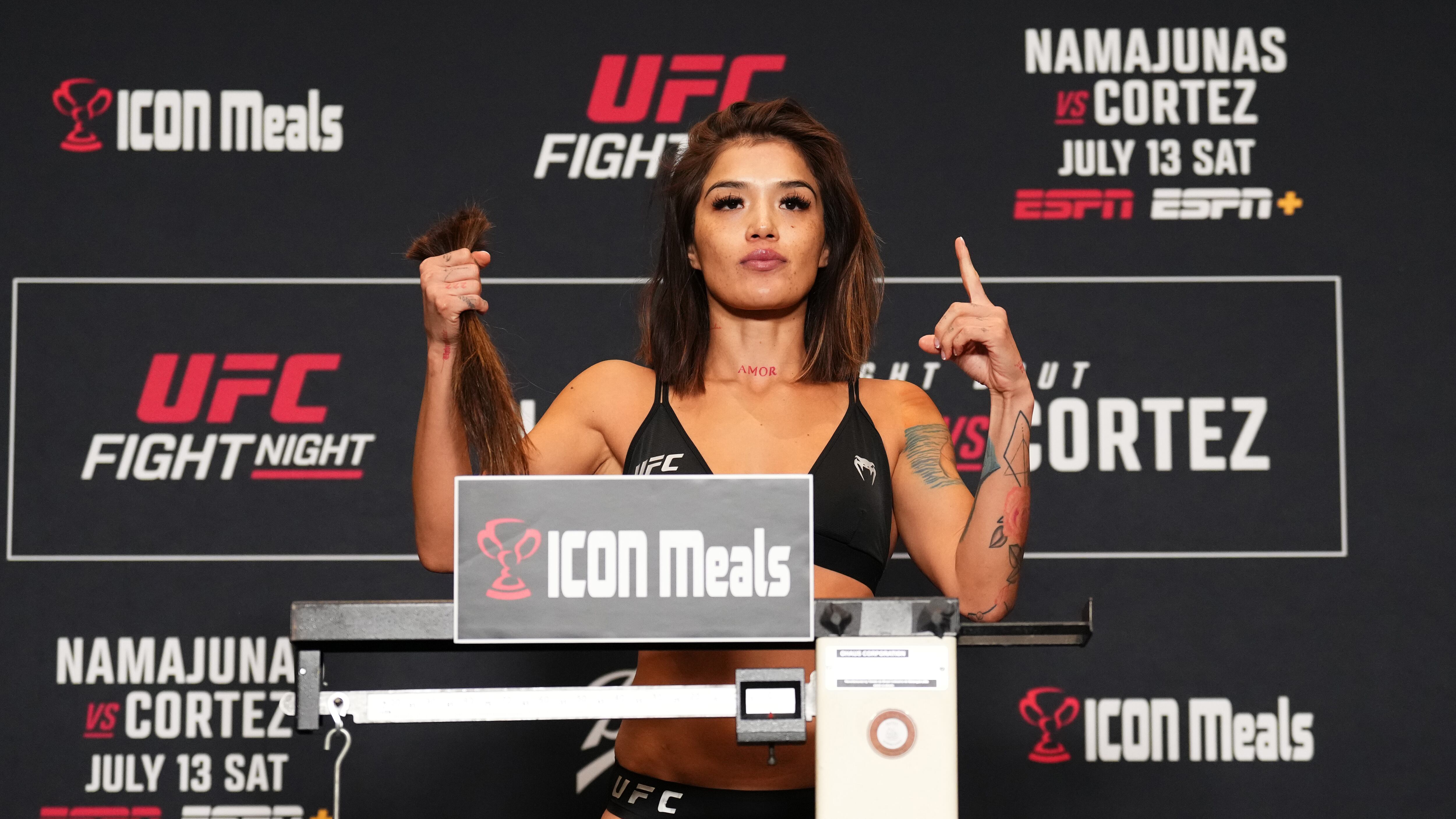 After struggling at a weigh-in Friday for Saturday's fight against Rose Namajunas, the 30-year-old flyweight fighter cut off a handful of her hair in order to lose the last half pound. Cortez's impromptu haircut gave her the push needed to make weight at 126 pounds.