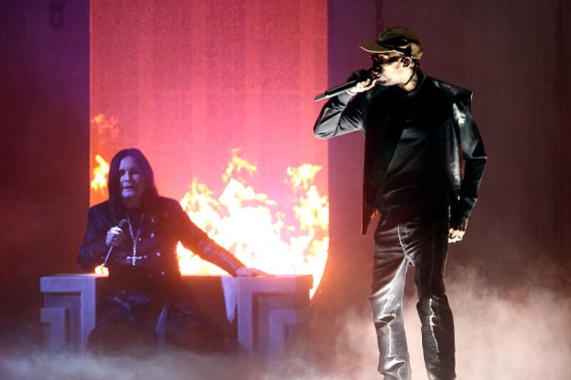Travis Scott LOS ANGELES, CALIFORNIA - NOVEMBER 24: (L-R) Ozzy Osbourne and Travis Scott perform onstage during the 2019 American Music Awards at Microsoft Theater on November 24, 2019 in Los Angeles, California. (Photo by Tommaso Boddi/WireImage) (Tommaso Boddi/WireImage via Getty Images)