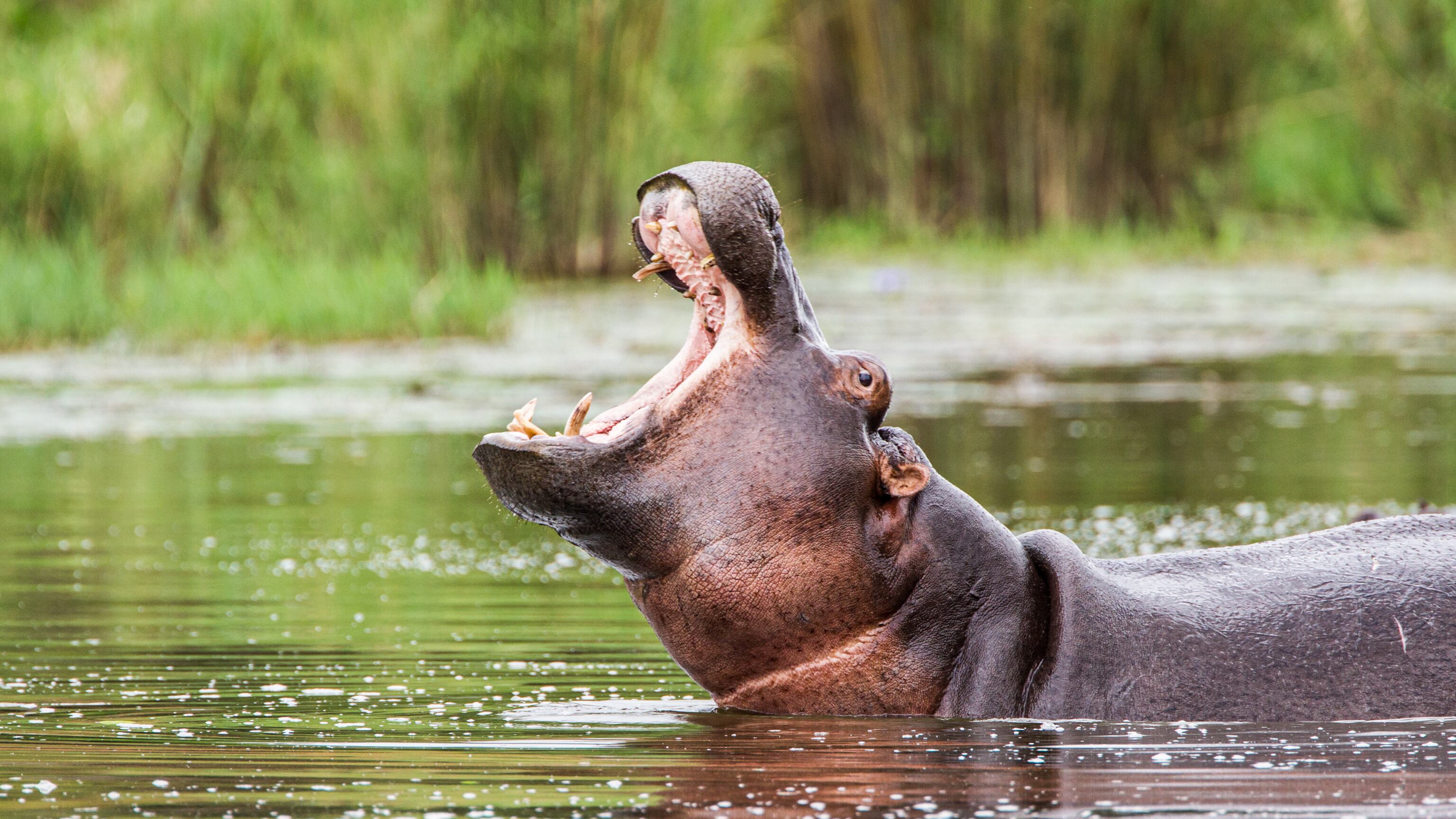 Hippos are herbivores but possess sharp canines measuring up to 20 inches for fighting. Their jaws are nearly three times stronger than a lion’s. While hippos are vegetarian, they do become aggressive when they sense danger, making them one of Africa’s most dangerous animals, according to National Geographic.