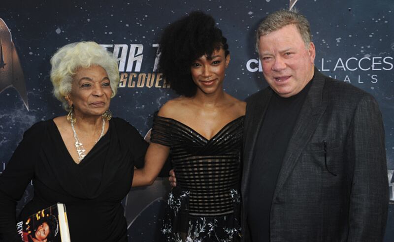 Nichelle Nichols through the years LOS ANGELES, CA - SEPTEMBER 19: Actors Nichelle Nichols, Sonequa Martin-Green and William Shatner pose at the Premiere Of CBS's "Star Trek: Discovery" held at The Cinerama Dome on September 19, 2017 in Los Angeles, California. (Photo by Albert L. Ortega/Getty Images) (Albert L. Ortega/Getty Images)