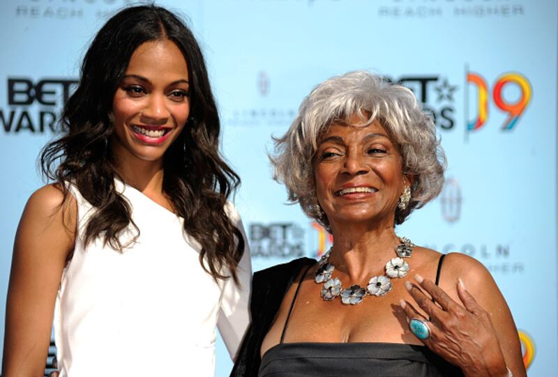 Nichelle Nichols through the years LOS ANGELES, CA - JUNE 28: Actresses Zoe Saldana and Nichelle Nichols arrive at the 2009 BET Awards held at the Shrine Auditorium on June 28, 2009 in Los Angeles, California. (Photo by Frazer Harrison/Getty Images) (Frazer Harrison/Getty Images)