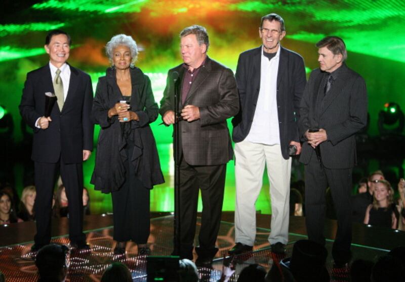 Nichelle Nichols through the years Actors George Takei, Nichelle Nichols, William Shatner, Leonard Nimoy and Walter Koenig accept the 25th Anniversary Reunion: "Star Trek II The Wrath of Khan" during the 2007 Spike TV Scream Awards at The Greek Theater on October 19, 2007 in Los Angeles, California. (Photo by Jason Merritt/FilmMagic) (Jason Merritt/TERM/FilmMagic via Getty Images)