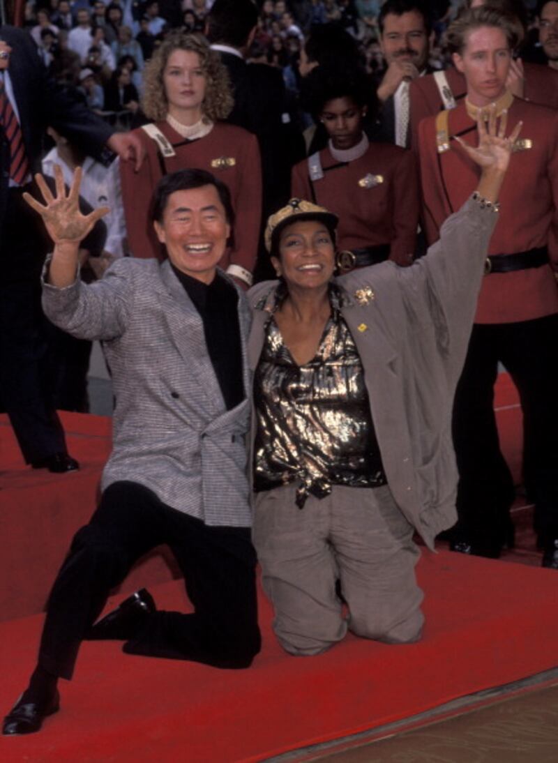 Nichelle Nichols through the years HOLLYWOOD - DECEMBER 5: Actress Nichelle Nichols and actor George Takei attending "Star Trek Signature Ceremony" on December 5, 1991 at Mann Chinese Thater in Hollywood, California. (Photo by Ron Galella, Ltd./Ron Galella Collection via Getty Images) (Ron Galella/Ron Galella Collection via Getty Images)