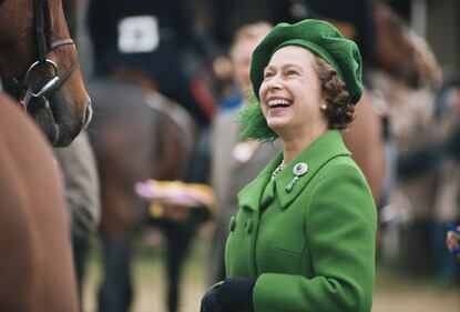 Photos: Queen Elizabeth II through the years Circa 1980: Queen Elizabeth II, wearing a green coat and matching hat, laughing as she attends the Royal Windsor Horse Show, held at Home Park in Windsor, Berkshire, England, Great Britain, circa 1980. (Tim Graham Photo Library via Getty Images)