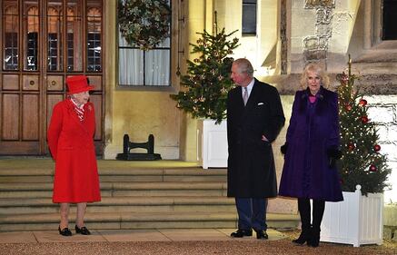 Queen Elizabeth II through the years 2020: Queen Elizabeth II (left) talks with Charles, Prince of Wales, and Camilla, Duchess of Cornwall, as they wait to thank local volunteers and key workers for the work they are doing during the coronavirus pandemic and over Christmas in the quadrangle of Windsor Castle on December 8, 2020, in Windsor, England. (Glyn Kirk - WPA Pool/Getty Images)