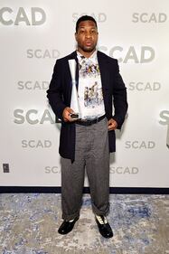 Photos: SCAD Savannah Film Festival 2022 red carpet Jonathan Majors poses backstage at the Jonathan Majors & J.D. Dillard Award Presentation during the 25th SCAD Savannah Film Festival on October 27, 2022, in Savannah, Georgia. (Cindy Ord/Getty Images for SCAD)