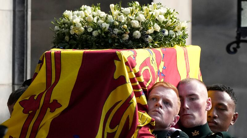 Royal family attends vigil for Queen Elizabeth II The bearer party carry the coffin of Queen Elizabeth II in to a Service of Prayer and Reflection for her life at St Giles' Cathedral on September 12, 2022 in Edinburgh, Scotland. (Photo Jane Barlow - WPA Pool/Getty Images) (WPA Pool/Getty Images)