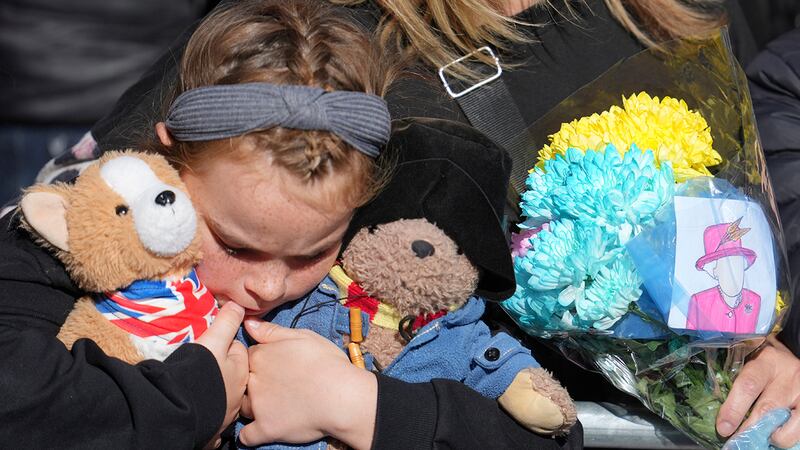 Crowds watch procession for Queen Elizabeth II's coffin in Scotland A young girl holds a Paddington bear and a Corgi dog stuffed toys while waiting to watch the Procession of Queen Elizabeth's coffin from the Palace of Holyroodhouse to St Giles Cathedral on the Royal Mile, on September 12, 2022 in Edinburgh, Scotland. King Charles III joins the procession accompanying Her Majesty The Queen's coffin from the Palace of Holyroodhouse along the Royal Mile to St Giles Cathedral. The King and The Queen Consort, accompanied by other Members of the Royal Family also attend a Service of Prayer and Reflection for the Life of The Queen where it lies in rest for 24 hours before being transferred by air to London. (Photo by Jon Super - WPA Pool/Getty Images) (WPA Pool/Getty Images)
