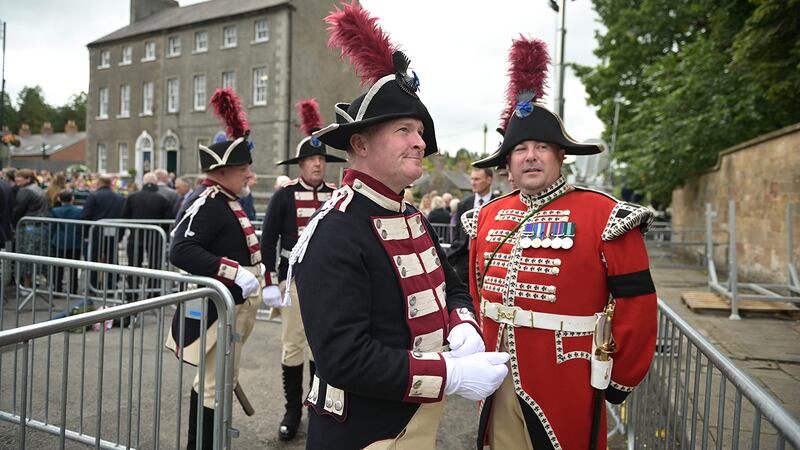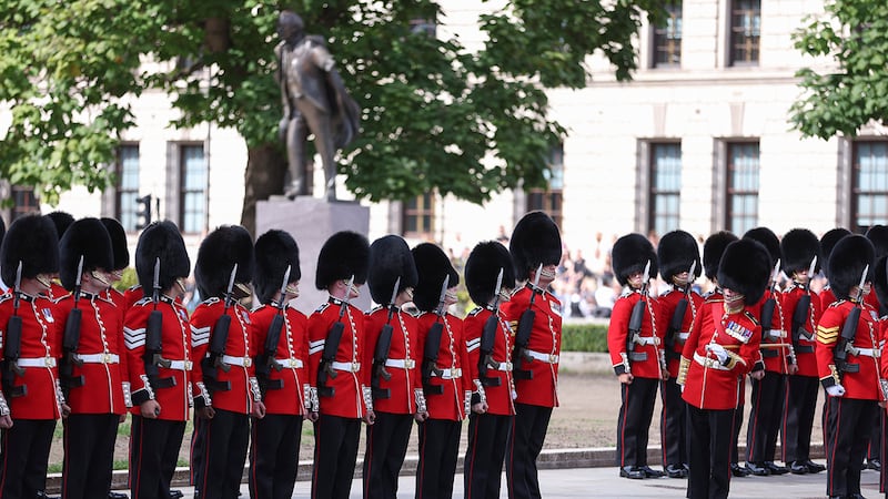 Photos: King Charles III visits Northern Ireland Ceremonial guards pictured as they await the arrival of His Majesty King Charles III accompanied by the Queen Consort outside Hillsborough Castle on September 13, 2022 in Hillsborough, Northern Ireland. King Charles III is visiting Northern Ireland for the first time since ascending to the throne following the death of his mother, Queen Elizabeth II, who died at Balmoral Castle on September 8, 2022. (Photo by Charles McQuillan/Getty Images) (Charles McQuillan/Getty Images)