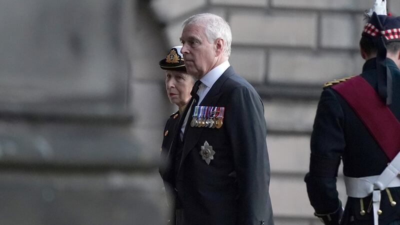Royal family attends vigil for Queen Elizabeth II Princess Anne and Prince Andrew, Duke of York arrive for a Vigil at St Giles Cathedral on September 12, 2022 in Edinburgh, Scotland. The Queen’s four children attend to stand vigil over her coffin where it lies in rest for 24 hours before being transferred by air to London. (Photo by Ian Forsyth/Getty Images) (Ian Forsyth/Getty Images)