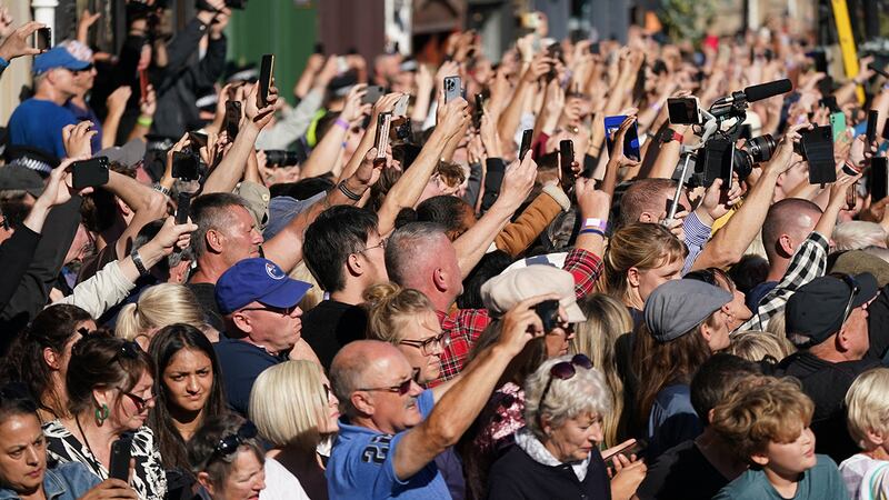 Queen Elizabeth II's coffin leaves Scotland for London Crowds wave ahead of the coffin carrying Her Majesty Queen Elizabeth II leaving St Giles Church on September 13, 2022 in Edinburgh, Scotland. The coffin carrying Her Majesty Queen Elizabeth II leaves St Giles Church travelling to Edinburgh Airport where it will be flown to London and transferred to Buckingham Palace by road. Queen Elizabeth II died at Balmoral Castle in Scotland on September 8, 2022, and is succeeded by her eldest son, King Charles III. (Photo by Ian Forsyth/Getty Images) (Ian Forsyth/Getty Images)