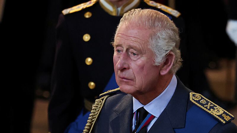 Photos: King Charles III visits Northern Ireland King Charles III arrives for a service of reflection in memory of Queen Elizabeth II at St Anne's Cathedral on September 13, 2022 in Belfast, Northern Ireland. King Charles III is visiting Northern Ireland for the first time since ascending the throne following the death of his mother, Queen Elizabeth II, who died at Balmoral Castle on September 8, 2022. (Photo by Carrie Davenport/Getty Images) (Carrie Davenport/Getty Images)