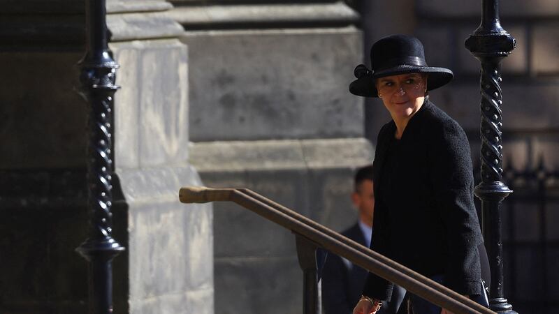 Queen Elizabeth II's coffin leaves Scotland for London First Minister of Scotland, Nicola Sturgeon, arrives at St Giles Church on September 13, 2022 in Edinburgh, Scotland. The coffin carrying Her Majesty Queen Elizabeth II leaves St Giles Church travelling to Edinburgh Airport where it will be flown to London and transferred to Buckingham Palace by road. Queen Elizabeth II died at Balmoral Castle in Scotland on September 8, 2022, and is succeeded by her eldest son, King Charles III. (Photo by Kai Pfaffenbach - WPA Pool/Getty Images) (WPA Pool/Getty Images)
