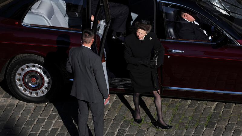 Queen Elizabeth II's coffin leaves Scotland for London Princess Anne, Princess Royal arrives at St Giles Church as the coffin of Elizabeth II travels to Edinburgh Airport on September 13, 2022 in Edinburgh, Scotland. The coffin carrying Her Majesty Queen Elizabeth II leaves St Giles Church travelling to Edinburgh Airport where it will be flown to London and transferred to Buckingham Palace by road. Queen Elizabeth II died at Balmoral Castle in Scotland on September 8, 2022, and is succeeded by her eldest son, King Charles III. (Photo by Russell Cheyne - WPA Pool/Getty Images) (WPA Pool/Getty Images)