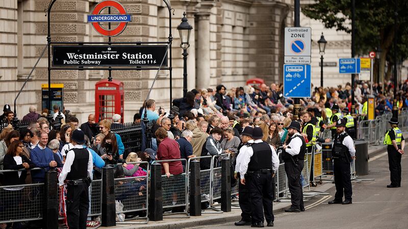 Officials said the line for people planning to pay their respects to the late queen was about 2 miles long following the service. The queen will lie in state at Westminster Hall until Monday.