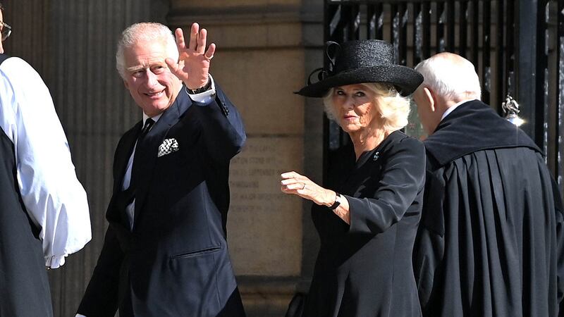 Photos: King Charles III visits Northern Ireland King Charles III and Camilla, Queen Consort, arrive at Writer's Square ahead of a service of reflection in memory of Queen Elizabeth II at St Anne's Cathedral on September 13, 2022 in Belfast, Northern Ireland. King Charles III is visiting Northern Ireland for the first time since ascending the throne following the death of his mother, Queen Elizabeth II, who died at Balmoral Castle on September 8, 2022. (Photo by Carrie Davenport/Getty Images) (Carrie Davenport/Getty Images)