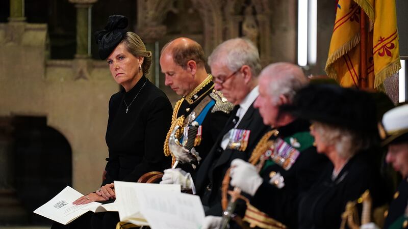 Royal family attends vigil for Queen Elizabeth II Sophie, Countess of Wessex, Edward, Earl of Wessex, Prince Andrew, Duke of York, King Charles III, Camilla, Queen Consort and Princess Anne, Princess Royal attend a Service of Prayer and Reflection for the Life of Queen Elizabeth II at St Giles' Cathedral, on September 12, 2022 in Edinburgh, Scotland. (Photo Jane Barlow - WPA Pool/Getty Images) (WPA Pool/Getty Images)