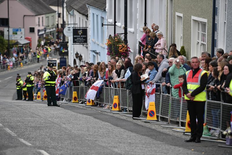 Photos: King Charles III visits Northern Ireland Members of the public await the arrival of His Majesty King Charles III accompanied by the Queen Consort outside Hillsborough Castle on September 13, 2022 in Hillsborough, Northern Ireland. King Charles III is visiting Northern Ireland for the first time since ascending to the throne following the death of his mother, Queen Elizabeth II, who died at Balmoral Castle on September 8, 2022. (Photo by Charles McQuillan/Getty Images) (Charles McQuillan/Getty Images)