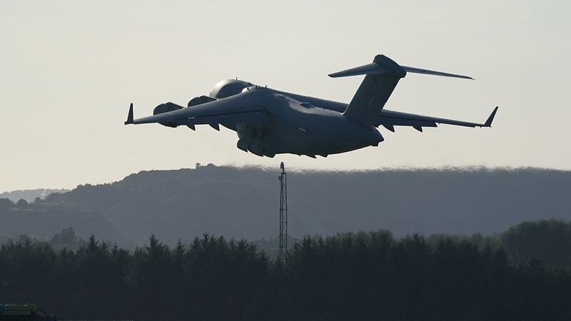 Queen Elizabeth II's coffin leaves Scotland for London The RAF C17 aircraft carrying the coffin of Queen Elizabeth II, takes off from Edinburgh airport on September 13, 2022 in Edinburgh, Scotland. The coffin carrying Her Majesty Queen Elizabeth II leaves St Giles Church travelling to Edinburgh Airport where it will be flown to London and transferred to Buckingham Palace by road. Queen Elizabeth II died at Balmoral Castle in Scotland on September 8, 2022, and is succeeded by her eldest son, King Charles III. (Photo by Andrew Milligan - WPA Pool/Getty Images) (WPA Pool/Getty Images)