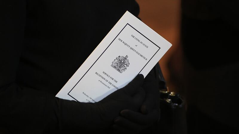 Photos: King Charles III visits Northern Ireland The order of service for a Service of Reflection for Queen Elizabeth II at St Anne's Cathedral on September 13, 2022 in Belfast, Northern Ireland. Charles and Camilla are visiting the four home nations of the UK in the run-up to the state funeral for Queen Elizabeth II on Monday. (Photo Liam McBurney - WPA Pool/Getty Images) (WPA Pool/Getty Images)