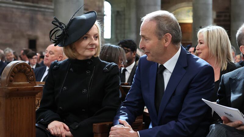 Photos: King Charles III visits Northern Ireland UK prime minister Liz Truss and Taoiseach Micheal Martin attend a Service of Reflection for Queen Elizabeth II at St Anne's Cathedral on September 13, 2022 in Belfast, Northern Ireland. Charles and Camilla are visiting the four home nations of the UK in the run-up to the state funeral for Queen Elizabeth II on Monday. (Photo Liam McBurney - WPA Pool/Getty Images) (WPA Pool/Getty Images)